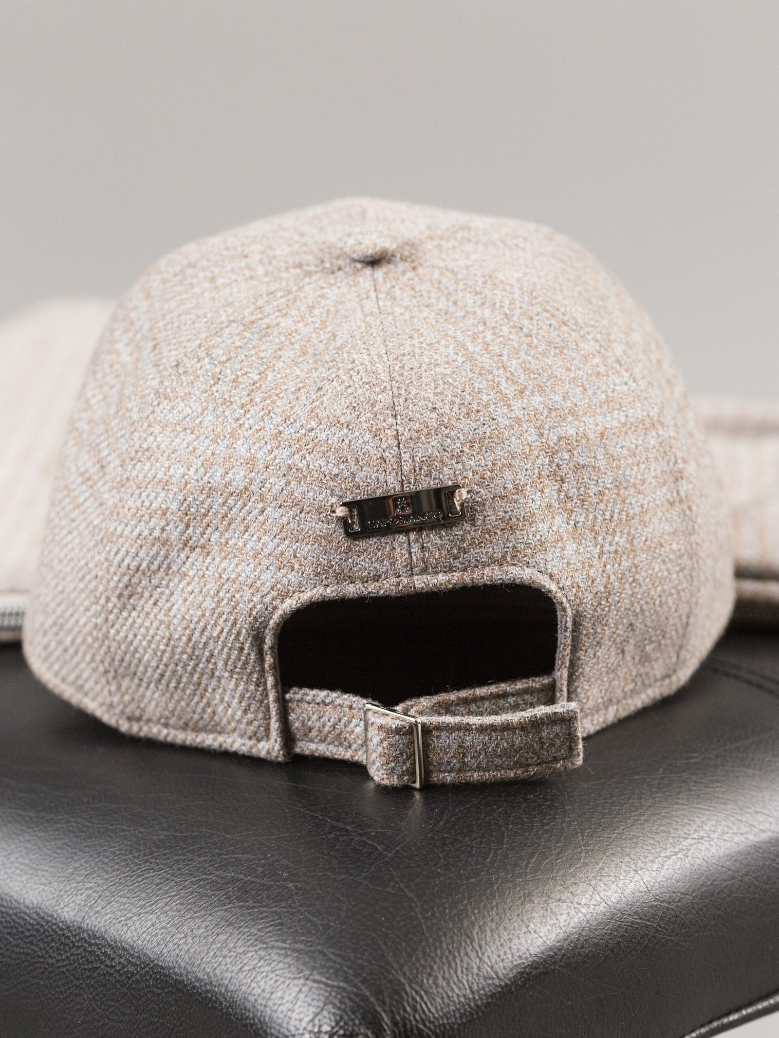 Cappello casual-lusso dal design ricercato, realizzato in pregiata flanella di lana e seta Loro Piana con motivo check. La fodera in jersey di cotone e cashmere offre una sensazione avvolgente e confortevole, ideale per le stagioni piรน fresche. Sul retro, un raffinato inserto in metallo con logo incastonato aggiunge un accento di stile discreto e sofisticato.