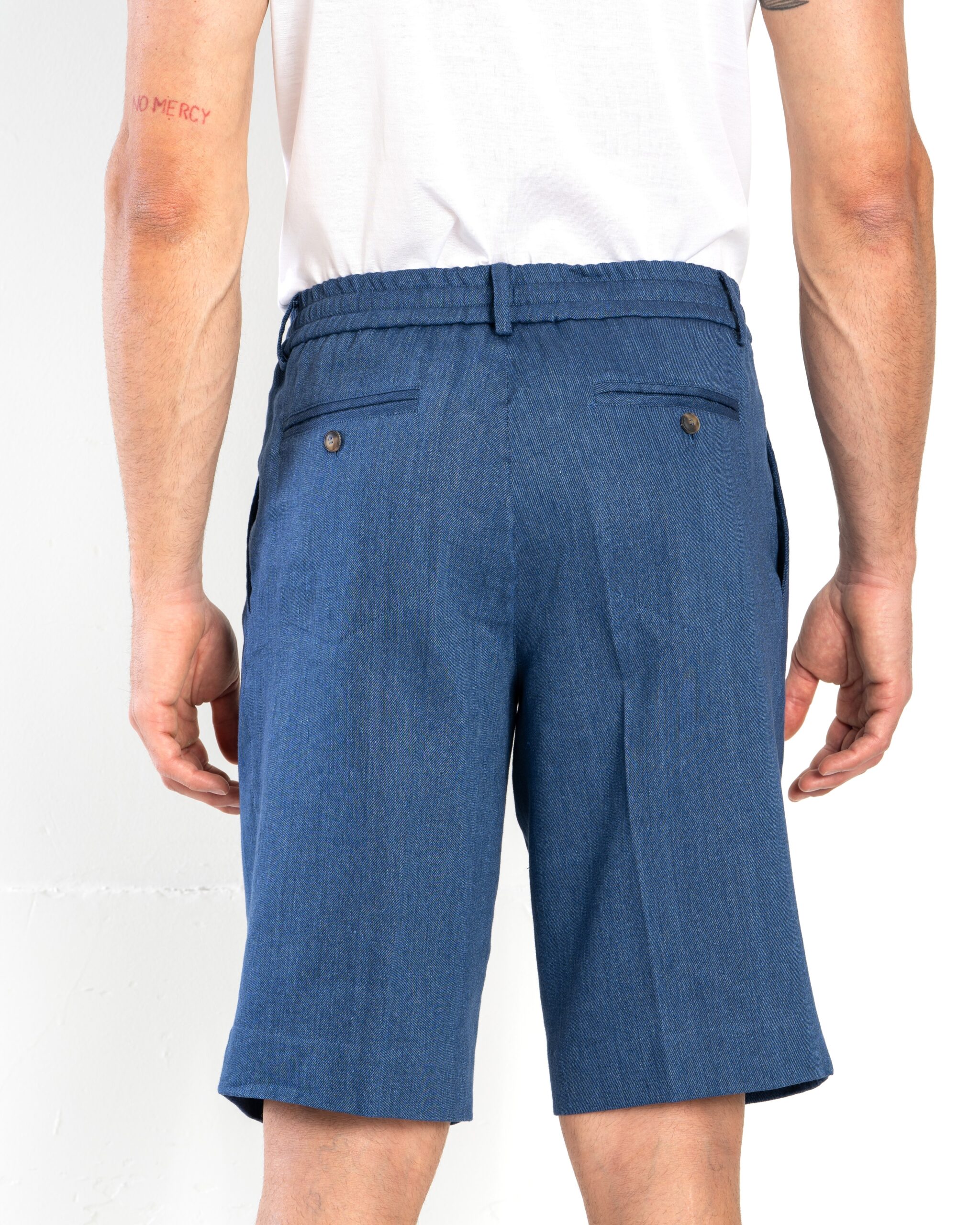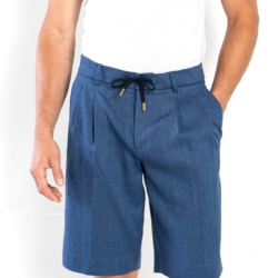 Bermuda pantacoulisse trendy e chic, realizzati in pregiato tessuto Twill di cotone e lino per un mix perfetto di stile e comfort. Presentano doppia pinces sul davanti, due tasche laterali sui fianchi e due tasche sul retro con bottoni logati. La vita elasticizzata è completata da una coulisse regolabile con clip logate, mentre il risvolto al fondo aggiunge un tocco raffinato e moderno. Ideali per un look estivo elegante e rilassato.