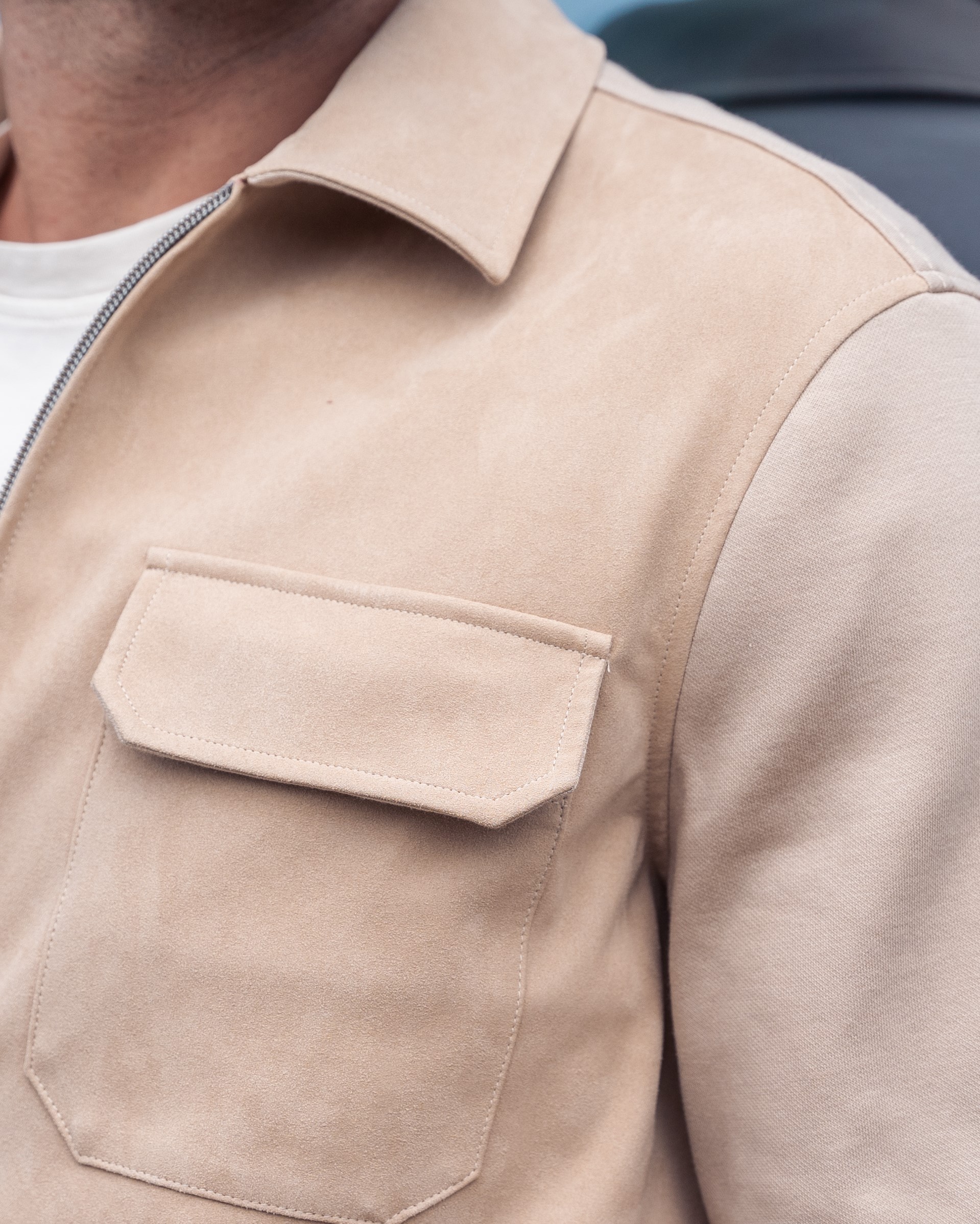 COTTON JERSEY JACKET WITH NUBUCK