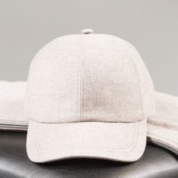Cappello casual-lusso realizzato in una calda e preziosa flanella di lana e cashmere Loro Piana, con fodera interna in morbido jersey di cotone e cashmere per un comfort avvolgente. Il design essenziale è impreziosito da una sottile placca in metallo con logo sul retro, che dona al capo un tocco di discreta eleganza e riconoscibilità.