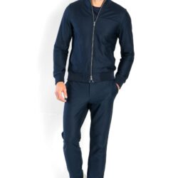 Completo sport-chic composto da felpa full-zip e pantacoulisse, realizzato in fresco e super leggero cotone Supima a costa leggera, traspirante e piacevole al tatto. La felpa presenta una zip frontale con doppio cursore logato, fascia e polsini in maglia a coste fini, due tasche laterali con zip e un pratico taschino interno. I pantaloni sono confezionati in morbido soft-jersey di cotone Supima, con due tasche sui fianchi e una tasca posteriore con bottoni logati. La vita è elasticizzata e regolabile tramite coulisse con terminali logati.