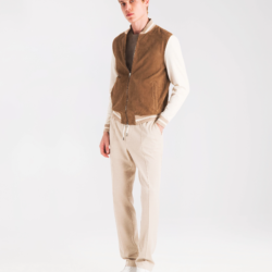 Bomber luxury‑casual realizzato in autentica pelle scamosciata, completamente sfoderato per mantenere leggerezza, morbidezza e una vestibilità naturale che segue i movimenti del corpo. Il suede, selezionato per la sua grana fine e la mano vellutata, dona al capo un aspetto sofisticato e una sensazione tattile ricca e avvolgente, esaltando la qualità del materiale e la sua eleganza rilassata. Il design è completato da una zip frontale con doppio cursore logato, collo e fondo in maglia di cotone a coste con righe a contrasto, maniche in maglia di cotone con polsini a coste rigate e due tasche laterali che uniscono funzionalità e stile. Un bomber versatile e contemporaneo, perfetto per un look casual di alta gamma che valorizza la purezza dei materiali e la cura artigianale.