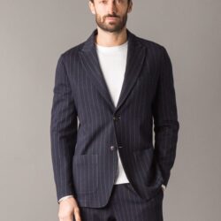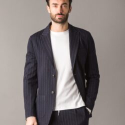 Blazer smart ed elegante, realizzato in un pregiato e caldo tessuto Woolcot con motivo gessato, ideale per uno stile raffinato e contemporaneo. È dotato di due tasche laterali e una tasca sul petto, con chiusura frontale tramite bottoni logati. La fodera interna in cupro assicura una sensazione di comfort e traspirabilità, mentre le finiture sartoriali eseguite a mano valorizzano la qualità artigianale del capo.