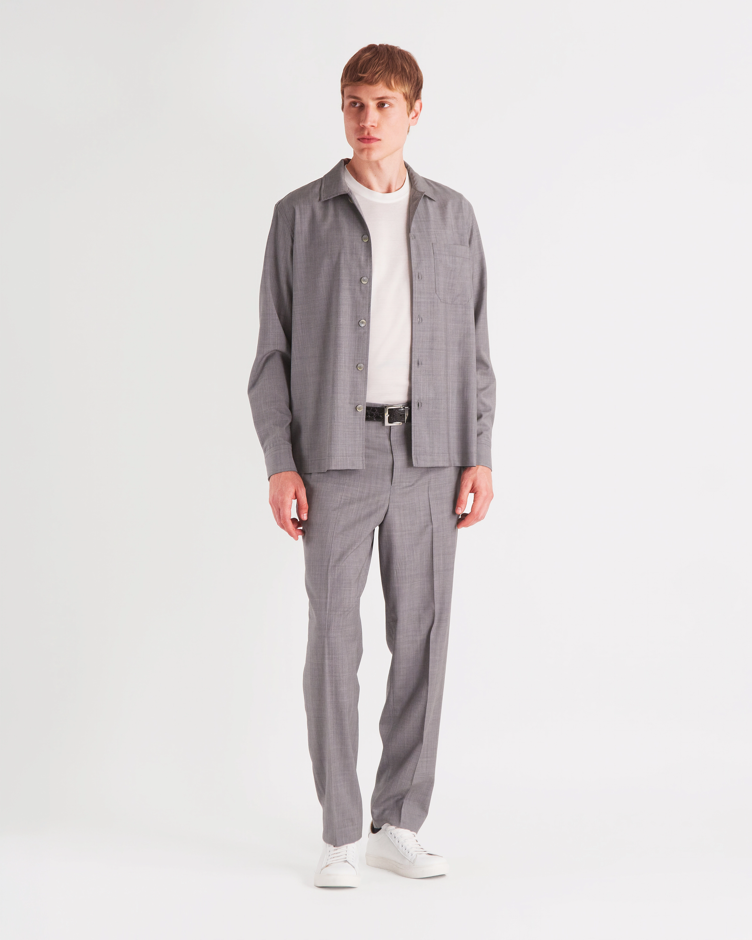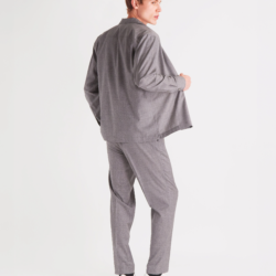 Realizzato in una finissima lana Merino REDA, fresca, traspirante, antibatterica e lavabile, questo completo garantisce una regolazione naturale della temperatura corporea anche nei climi più caldi, offrendo leggerezza, comfort ed eleganza quotidiana. Il set è composto da una over‑shirt casual‑chic e da pantacoulisse coordinati, entrambi caratterizzati dalla purezza e dalla freschezza della lana Merino REDA. L’over‑shirt presenta un design essenziale con una tasca al petto, bottoni logati sul davanti, collo e polsi a camicia, per uno stile pulito e contemporaneo. I pantacoulisse, confortevoli ed eleganti, sono realizzati nella stessa lana pregiata, con due tasche sui fianchi, due tasche posteriori con bottoni logati, elastico in vita con coulisse e clips logate, e risvolto al fondo. Un completo versatile e raffinato, ideale per un’eleganza leggera e funzionale.