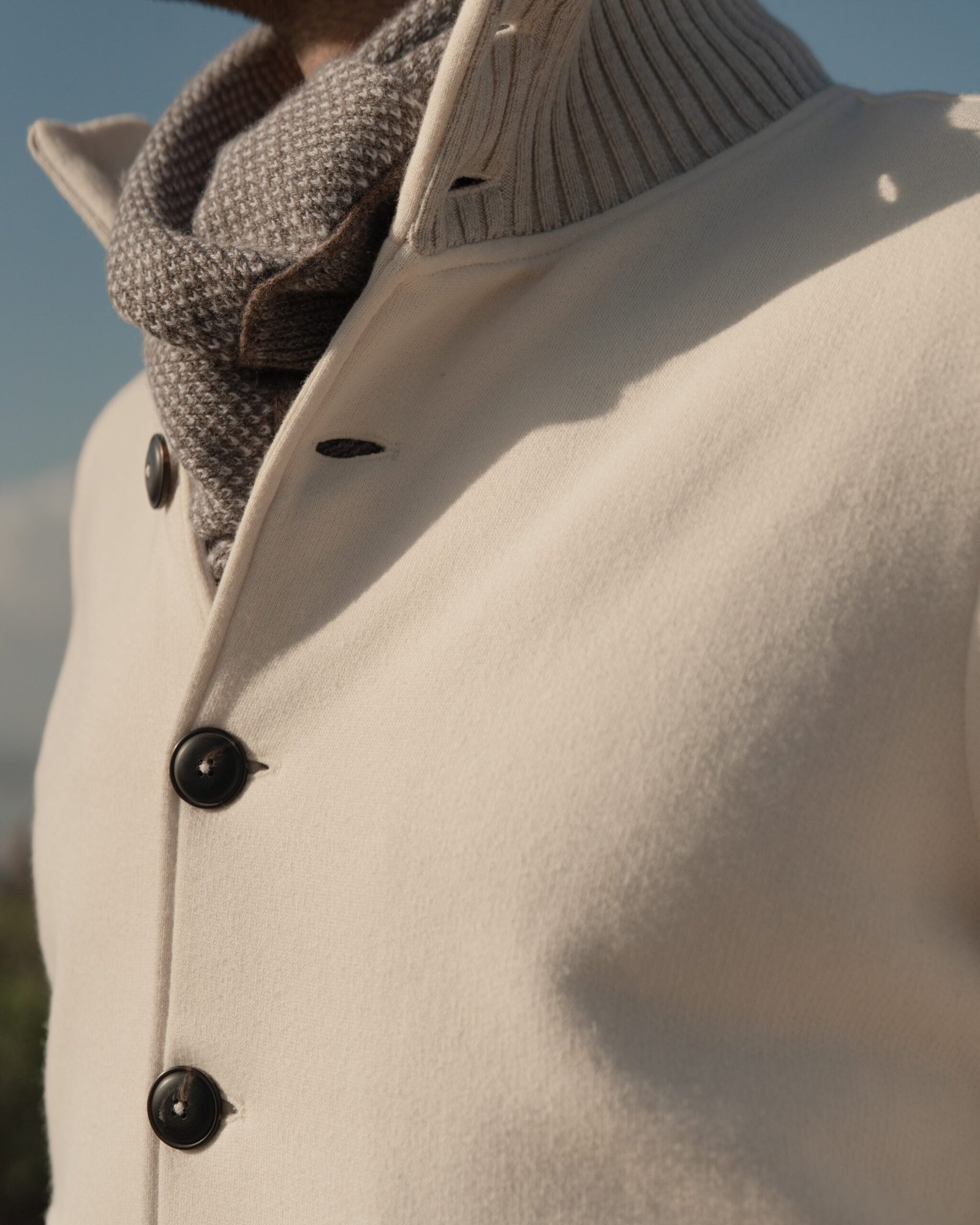 Composizione tessuto: 95% Cotone / 5% Cashmere: Naturale e morbido. Il cotone garantisce comfort e traspirabilità, il cashmere aggiunge calore e raffinatezza.