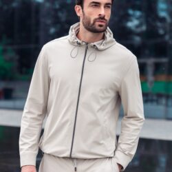 Sport-chic Hoody, il capo ideale per un look fresco e dinamico, realizzato in innovativo tessuto Sensitive leggermente elasticizzato. Questo materiale offre eccezionali proprietà: traspirabilità per un comfort ottimale, resistenza alle pieghe per una perfetta vestibilità, e tecnologia quick dry per una rapida asciugatura. Il design moderno è arricchito da dettagli funzionali e raffinati, come la zip frontale con doppio cursore logato, il cappuccio regolabile con coulisse e clips, e i polsi a camicia per un tocco di eleganza. Completano il modello due pratiche tasche con zip e un comodo taschino interno. Perfetto per chi cerca stile e performance in un unico capo versatile.