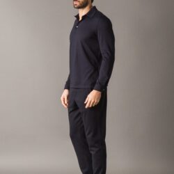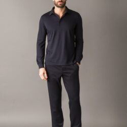 Polo a maniche lunghe dal carattere smart e chic, realizzata in un jersey prezioso ed extra-morbido composto da cotone, lana, cashmere e lyocell. Il mix di fibre naturali garantisce una sensazione piacevole sulla pelle, leggerezza e comfort termico. Il colletto e i polsini stile camicia aggiungono un tocco sartoriale, rendendo il capo ideale per un’eleganza rilassata e contemporanea.