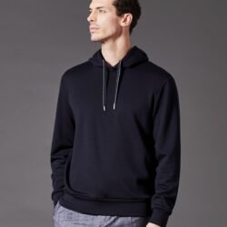 Felpa con cappuccio dal look luxury-casual, realizzata in pregiato fleece di pura lana Merino, selezionata per le sue eccezionali proprietà termoregolanti. Il tessuto reagisce attivamente alle variazioni di temperatura corporea, trattenendo il calore quando fa freddo e rilasciando umidità e calore in condizioni più calde. Il design include cappuccio con coulisse regolabile e stopper logato, oltre a una placca in metallo con logo posizionata sul retro del colletto.