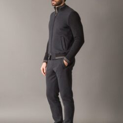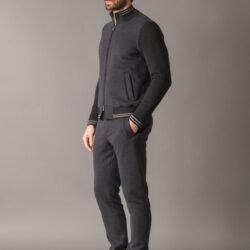Casual-chic matching set composed of a full-zip sweatshirt and coordinated pants, crafted from a premium melange fleece in warm cotton and cashmere, exceptionally soft and comfortable. The sleeves, collar, and waistband are finished in cozy wool knit, warm and enveloping to the touch. The sweatshirt features a front zip with double logoed puller, two side pockets, an internal chest pocket, and a metal logo plate on the back of the collar. The interior is lined with winter cotton to effectively absorb moisture and ensure thermal comfort. The pants include two side pockets, a back pocket with logoed button, and an elasticated waistband with adjustable drawstring and metal stoppers. A refined look, perfect for stylish leisurewear.