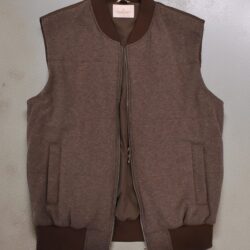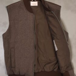 Casual-chic quilted vest made from a warm and refined fleece in cashmere and cotton, soft and comfortable to the touch. The back and inner lining in windproof polyester provide effective protection from the elements, while the Climalight recycled polyester padding ensures warmth and lightness. The collar and bottom hem are finished in knit for a cozy feel. The front features a zip closure with double logoed pullers. Two zipped side pockets and a metal logo plate on the back of the collar complete the look with understated elegance.
