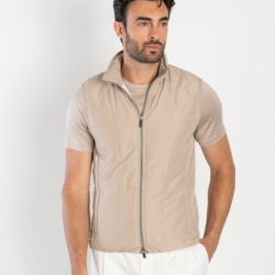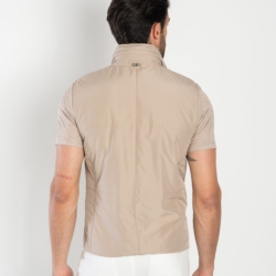 Casual and sporty quilted rainproof nylon gilet, with hood inside the collar, light pure cotton jersey lining, two-way front zip, two zipped pockets plus third inside breast pocket, metal logo plaque on back neck, padded with a very light wadding. Perfect for adding a note of practicality and style to your day, the quilted rainproof nylon vest is an essential garment for your outdoor adventures or for a casual and sporty urban look. Rainproof nylon provides protection from the elements and quilting adds an eye-catching texture.