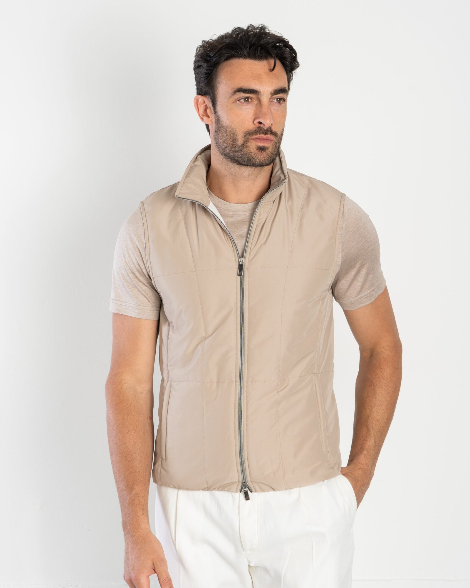 Perfect for adding a note of practicality and style to your day, the quilted rainproof nylon vest is an essential garment for your outdoor adventures or for a casual and sporty urban look. Rainproof nylon provides protection from the elements and quilting adds an eye-catching texture.