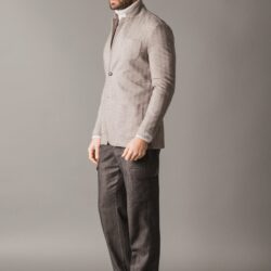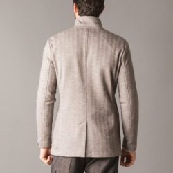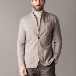 Smart and chic blazer crafted from premium warm Woolcot fabric with a Chevron pattern, perfect for an elegant yet relaxed style. It features two side pockets and a chest pocket, with a front closure of logoed buttons. The interior is lined in cupro for enhanced breathability and comfort, while hand-finished tailoring details highlight the garment’s artisanal quality.