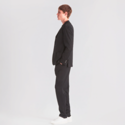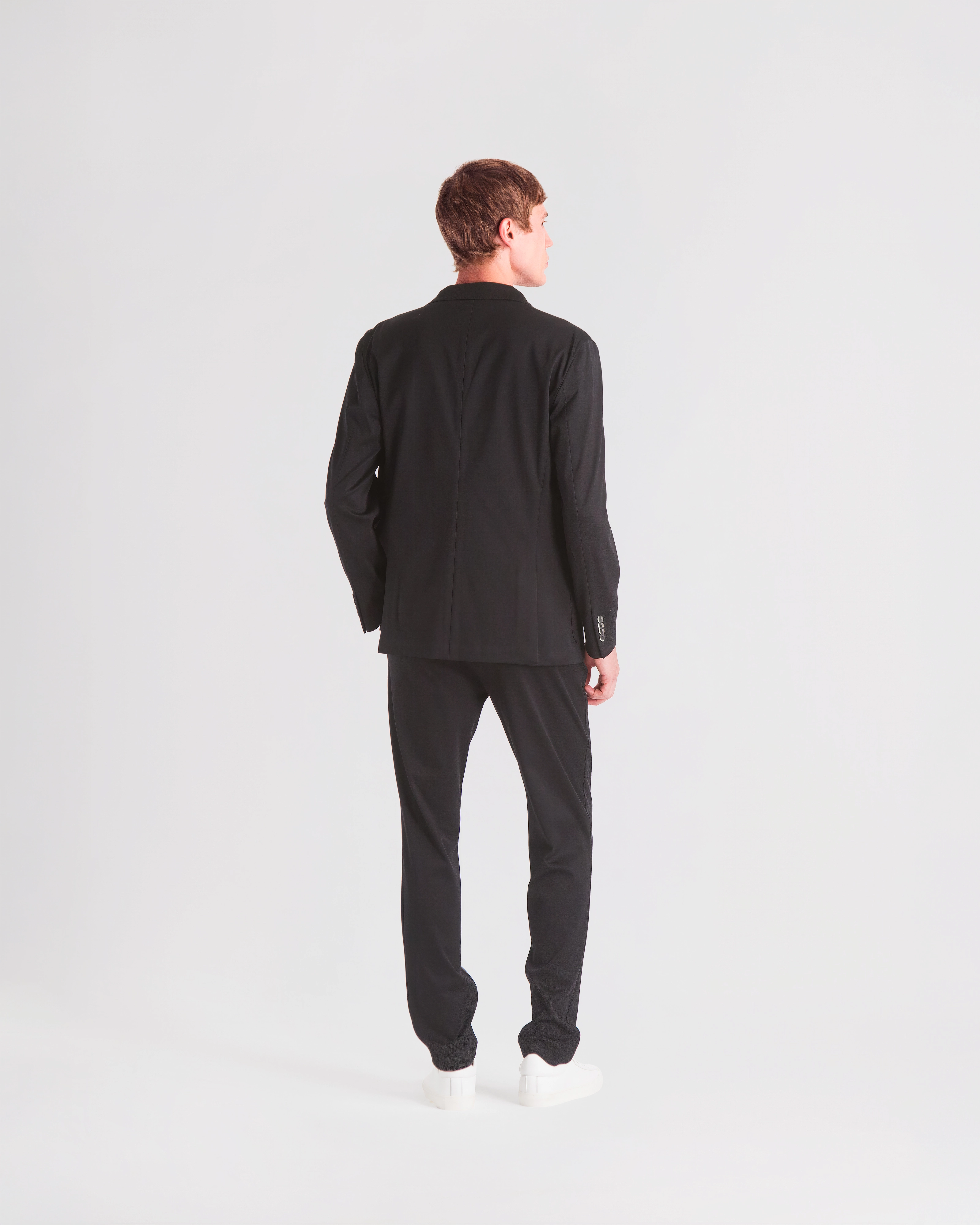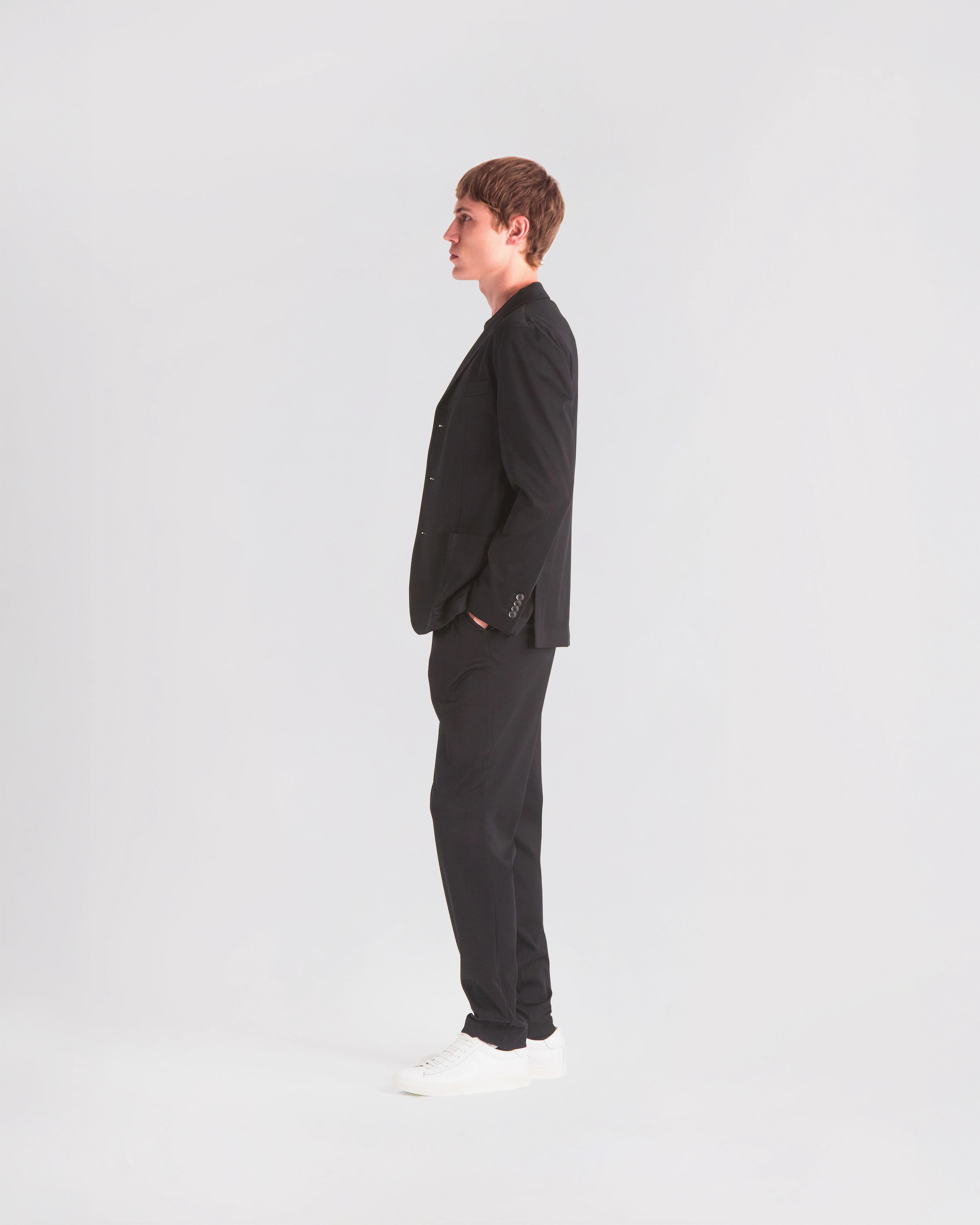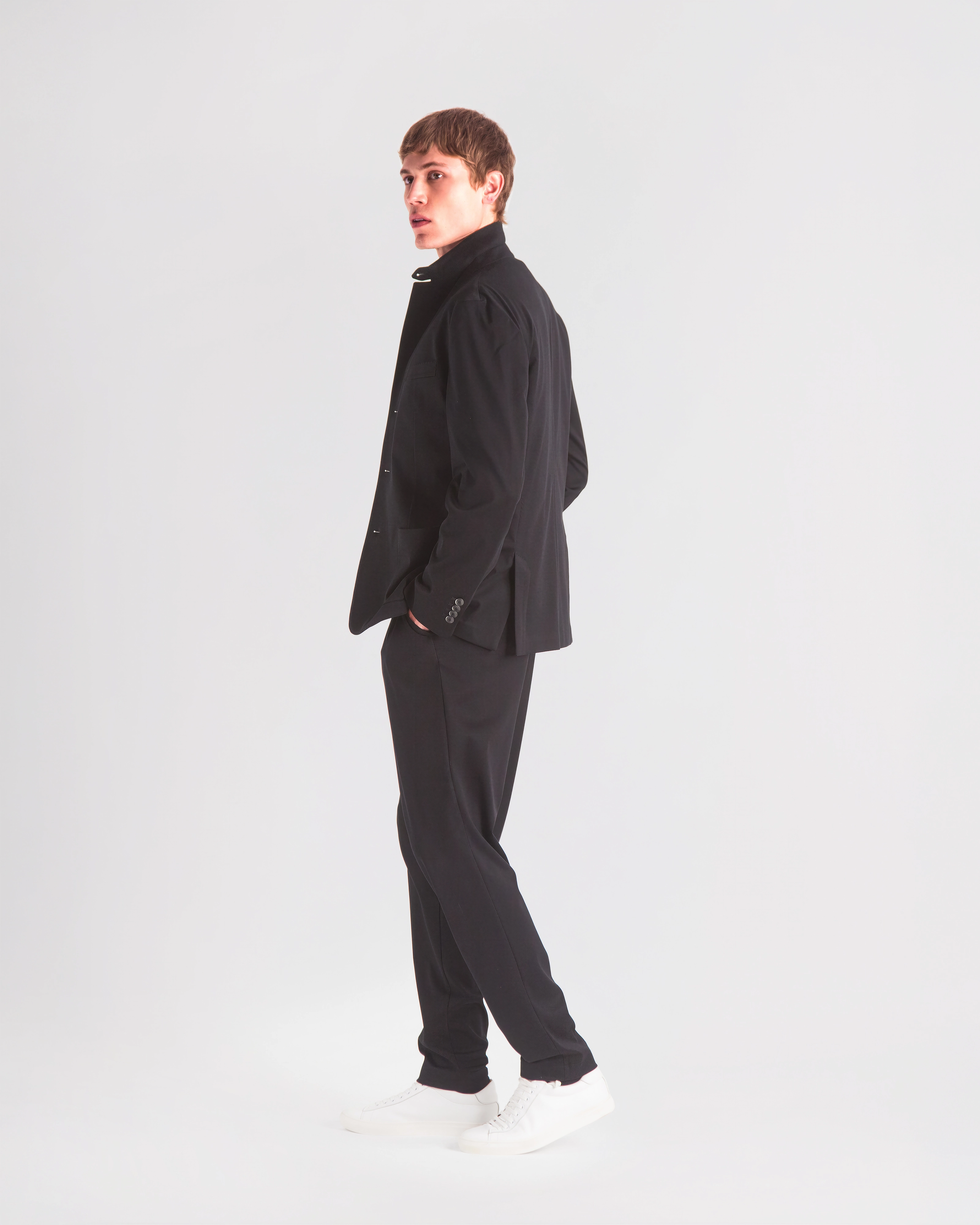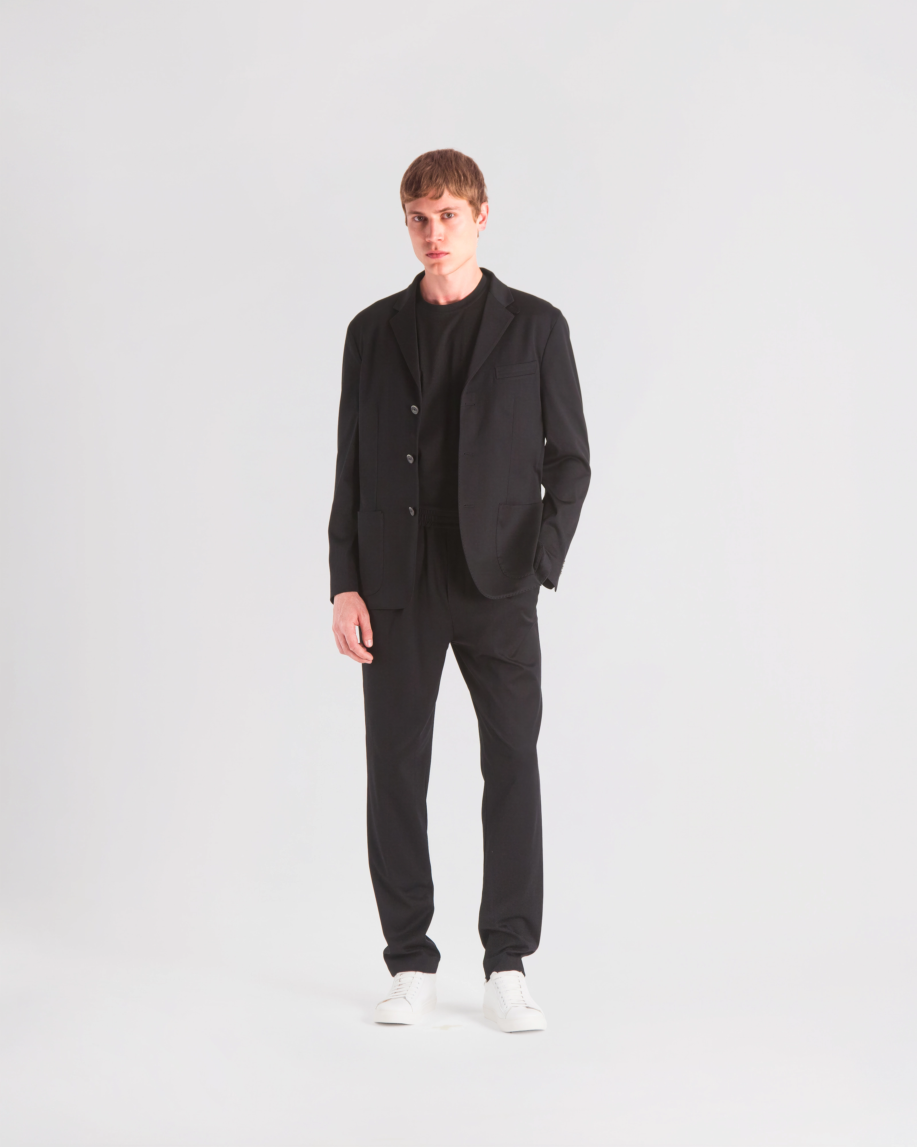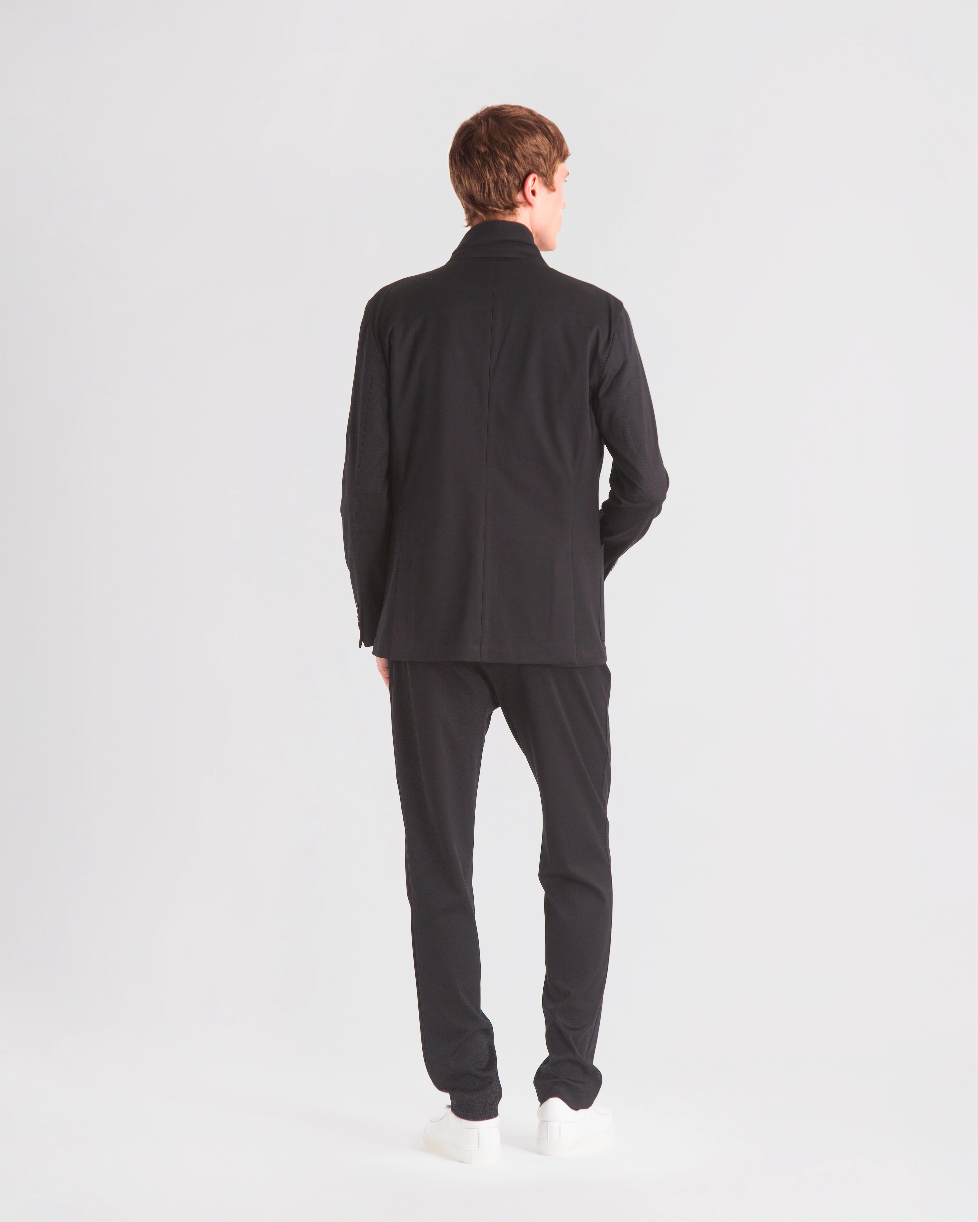 Crafted from a soft Supima cotton jersey, fine, lightweight and naturally elastic, this blazer delivers exceptional comfort and a relaxed elegance, perfect for a contemporary and versatile style. The comfort‑trend construction features a deconstructed shoulder and a fully unlined body, offering a fluid and dynamic fit. The three‑button design includes a toggle detail at the neck, two front pockets, a breast pocket and an inside chest pocket, along with two back slits that enhance the silhouette. Hand‑finished details highlight the craftsmanship and give the garment a refined, sophisticated character.