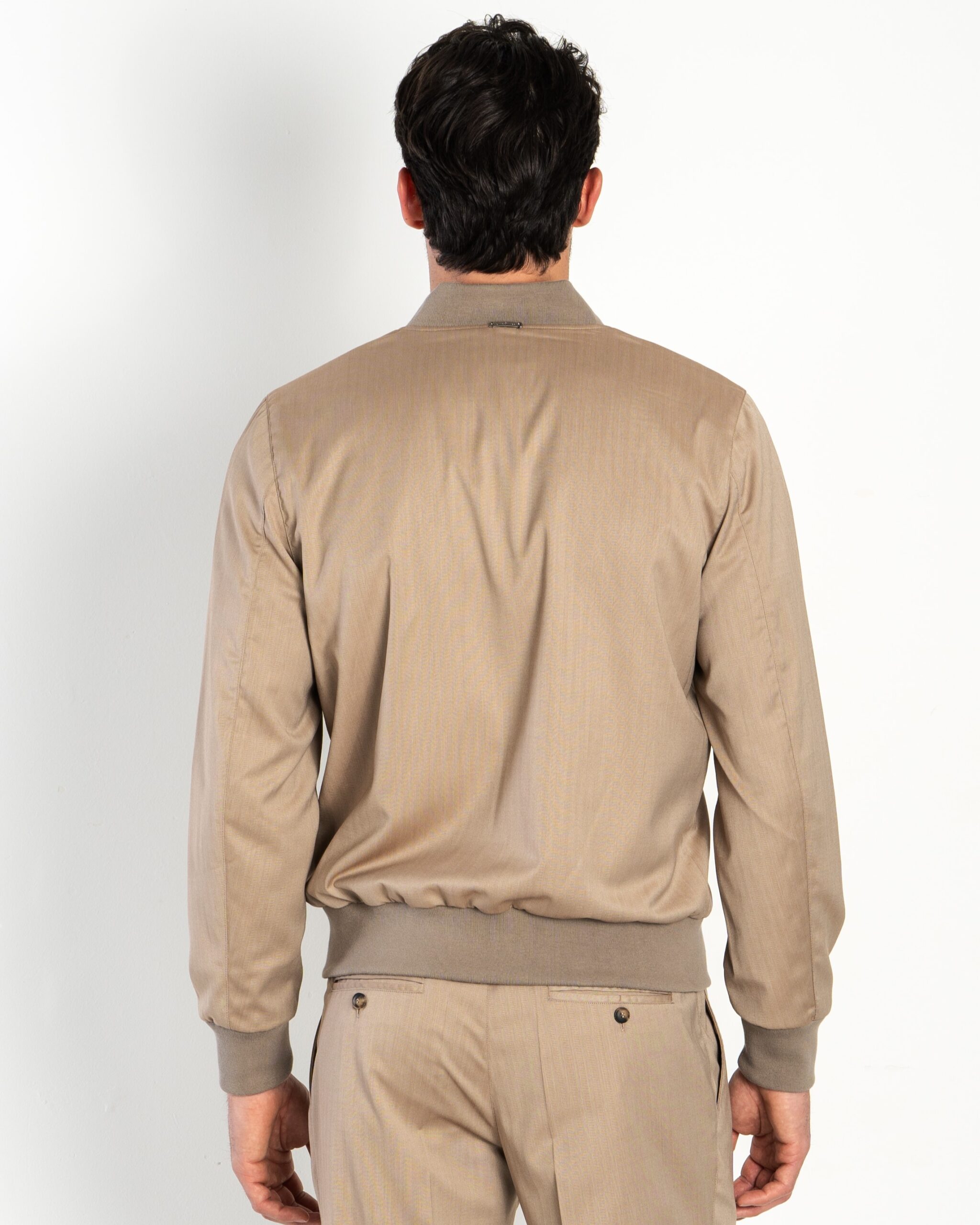 Fresh and chic, this bomber jacket is crafted from a refined cotton and Lyocell fabric featuring a chevron pattern that exudes elegance and lightness. The pure cotton light jersey lining ensures excellent breathability, while the fine cotton ribbed trims add a sophisticated touch. The closure features a double branded slider zipper for practicality, complemented by two zippered side pockets and a convenient inner chest pocket for impeccable functionality. A perfect garment for those seeking style and comfort in one solution.