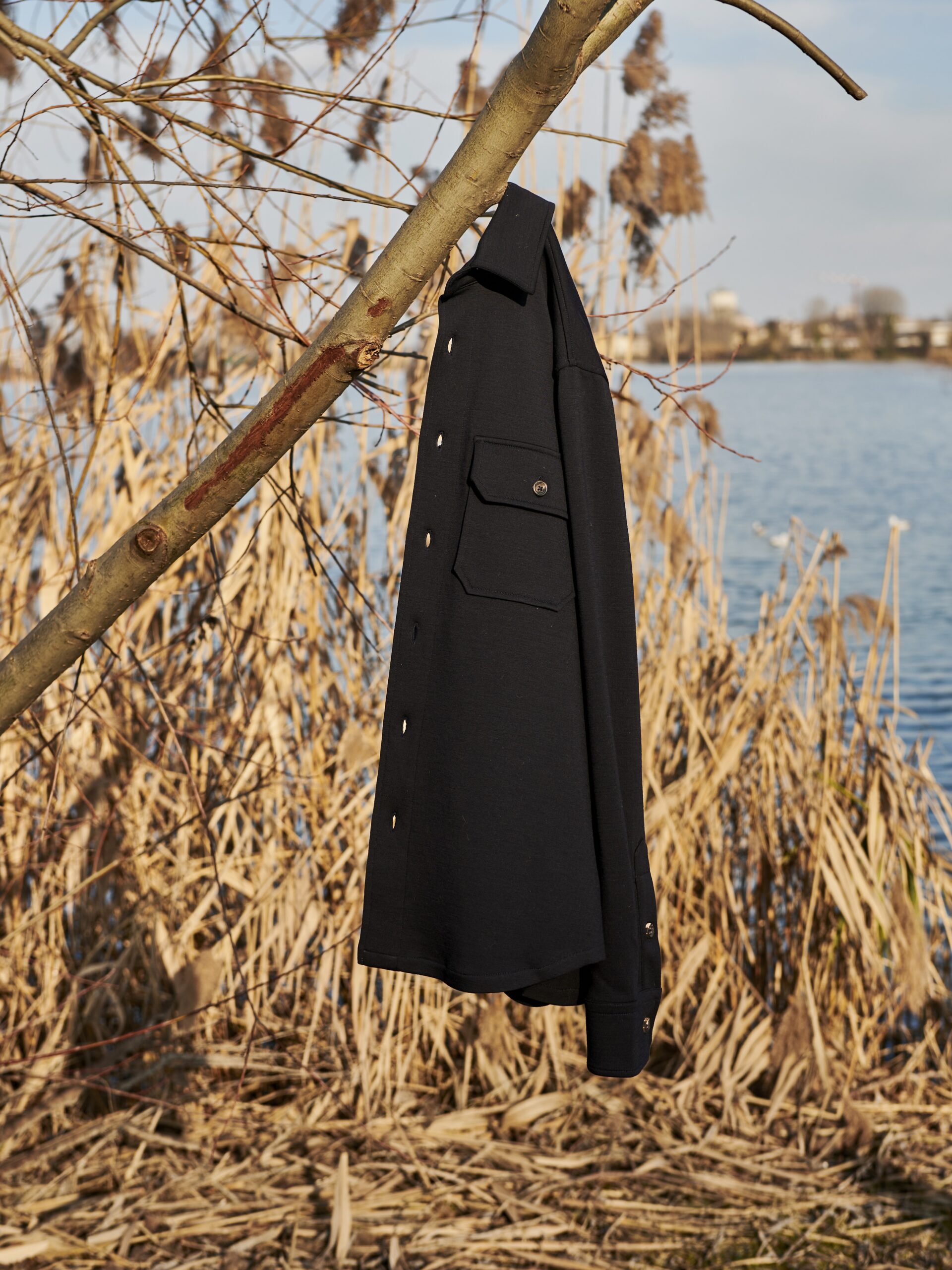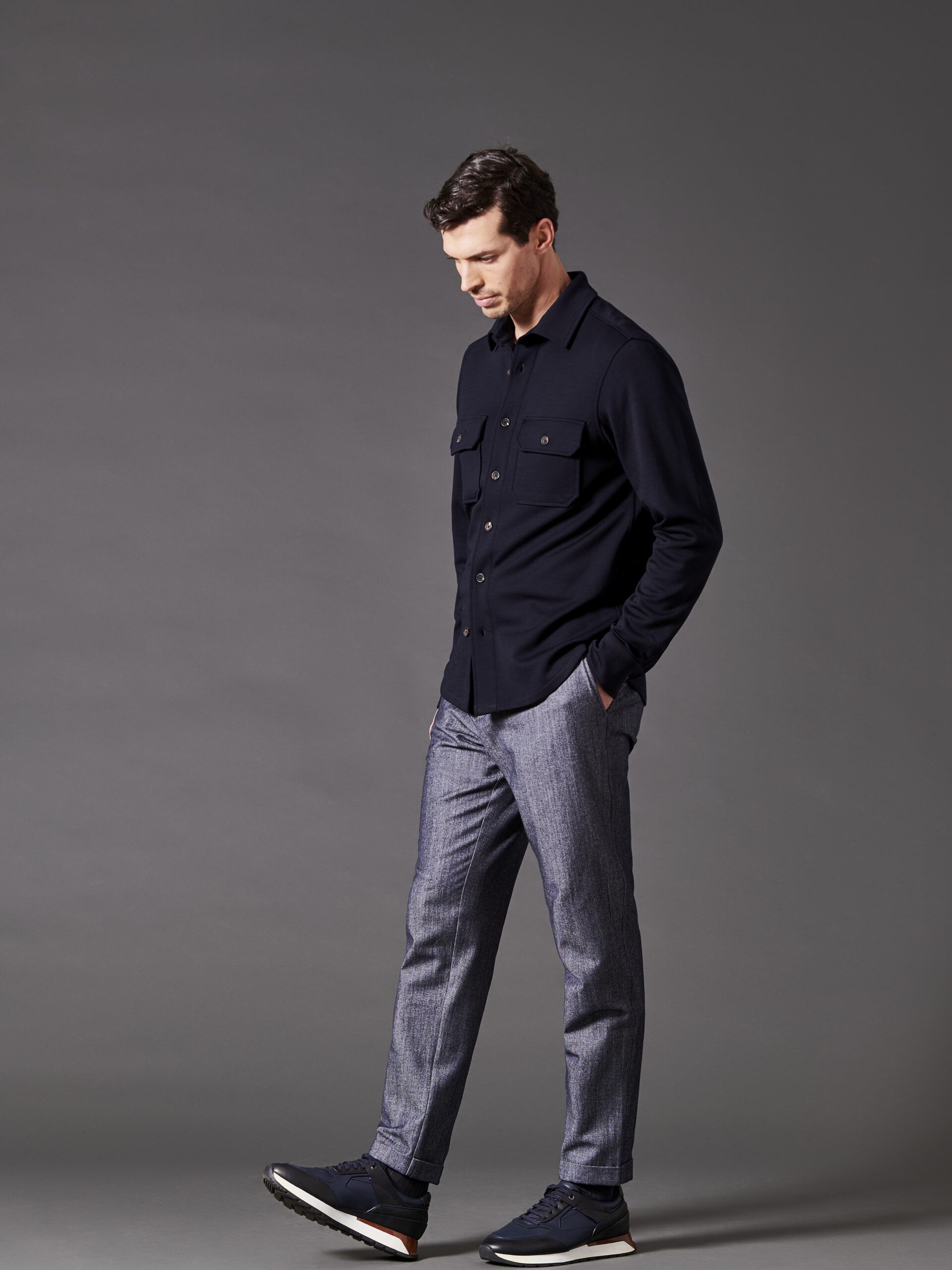 Crafted from precious pure Merino wool, renowned for its softness and natural warmth, this overshirt features two front patch pockets with flaps and logoed buttons, along with a front closure with logoed buttons. A straight-cut hem and shirt-style cuffs add a tailored touch. Designed for informal occasions, it blends relaxed style with contemporary elegance, making it a versatile and distinctive piece.