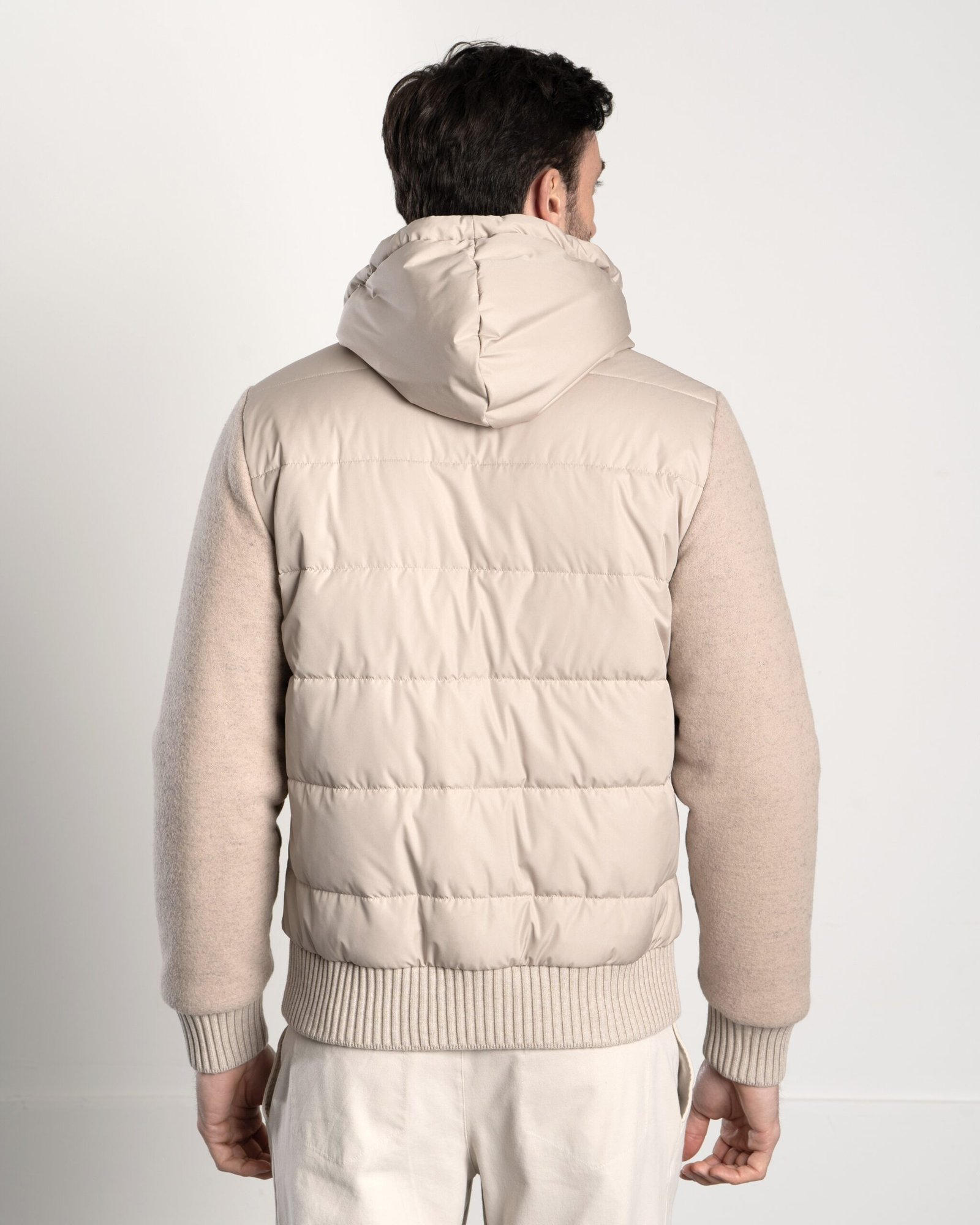 QUILTED NYLON BOMBER WITH WOOLCOT SLEEVES