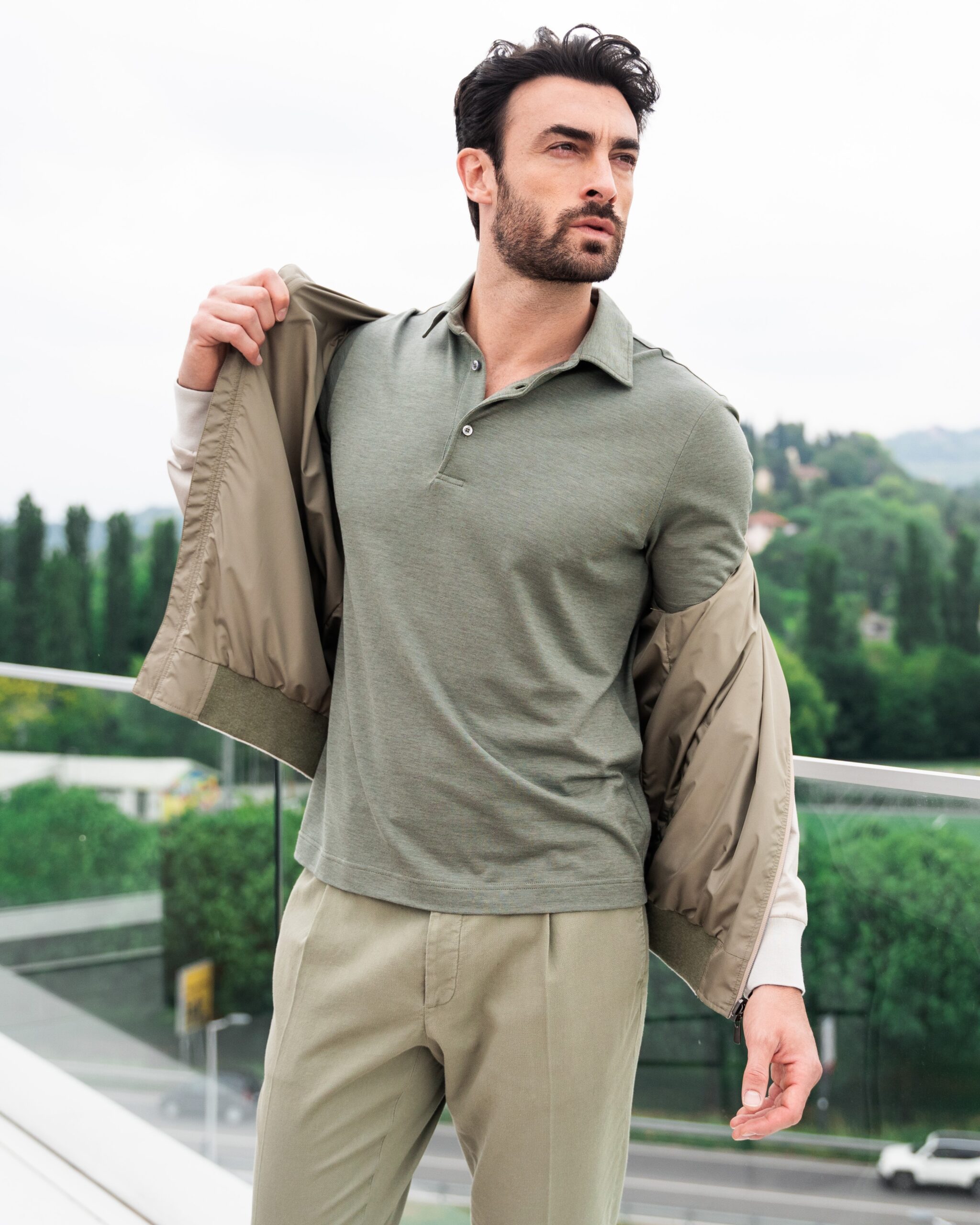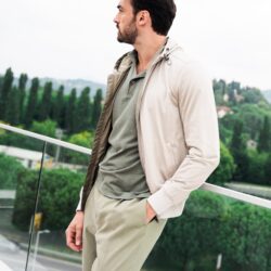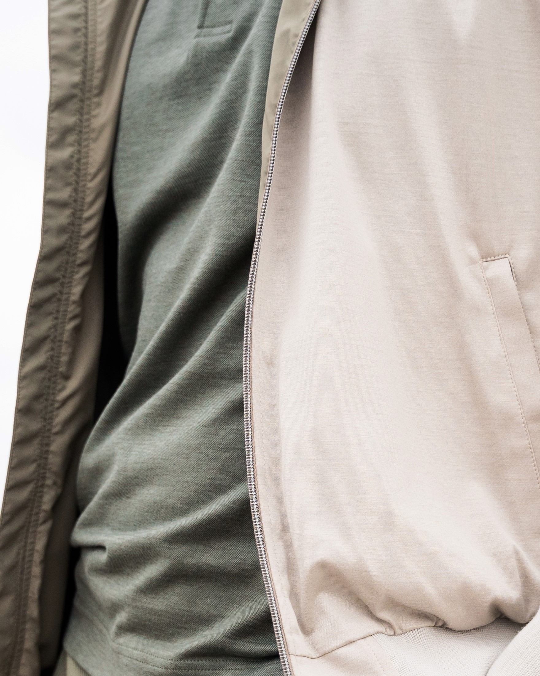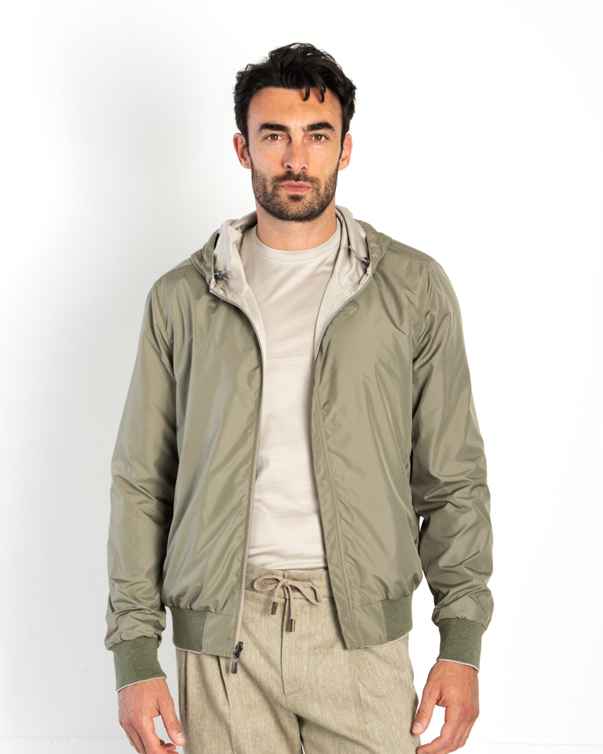 Reversible ultra-light jacket, designed to combine elegance, comfort, and functionality in a single versatile garment, made with one side in fine Sea Island cotton, known for its extraordinary lightness, breathability, and softness on the skin, and the other side in durable recycled polyester, which ensures windproof properties and environmental sustainability. Thoughtful details such as the double reversible logo zipper, four practical pockets including two with zip closures, and the adjustable hood with drawstrings and branded tips make this hoodie the perfect mix of style and utility. The lightweight cotton knit borders add a refined touch and extra comfort.
