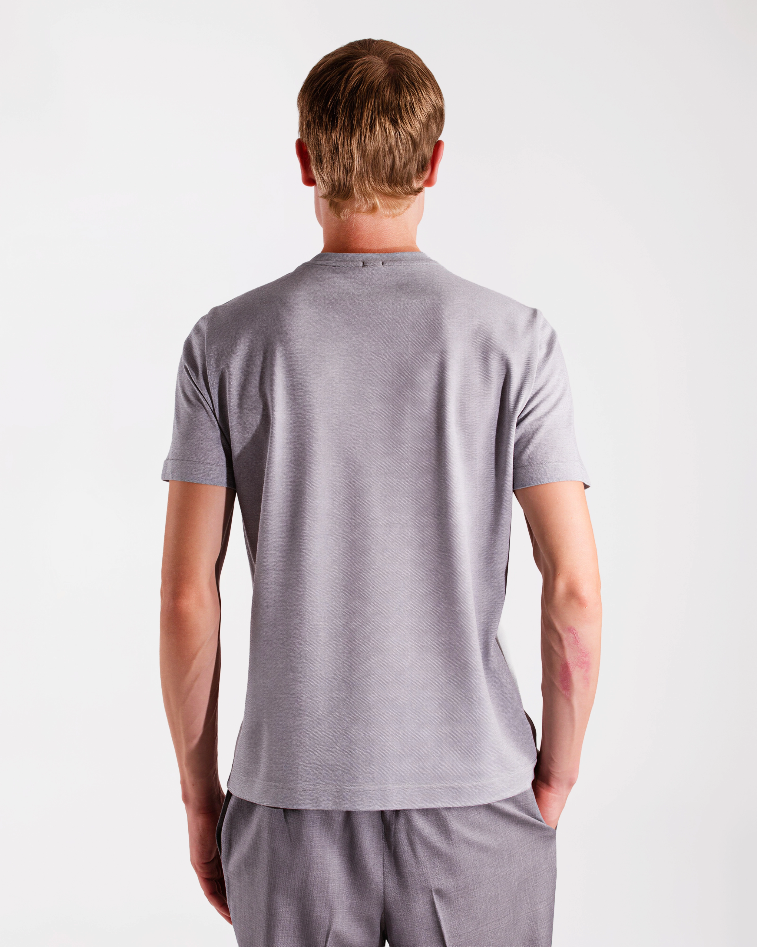 Crafted from fine yarn‑dyed melange Supima cotton jersey, this T‑shirt offers a refined, smooth hand feel and the natural softness and color brilliance typical of premium fibres. The clean design is enhanced by two small side slits at the bottom and a visible logo label, adding a subtle contemporary touch. A lightweight and versatile piece, perfect for everyday elegance with a discreet and refined character.