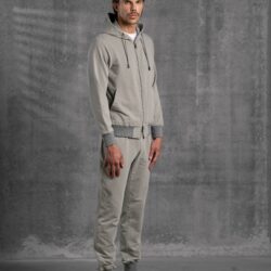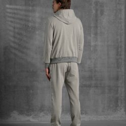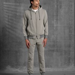 Tracksuit consisting of a full zip hoody and sweatpants, crafted from lightly stretch pure cotton jersey, a soft, natural and flexible fabric that ensures comfort, breathability and ease of movement. The entire set is garment dyed using an eco‑friendly earth‑based technique inspired by ancient dyeing methods and completely free from chemicals, giving the color a unique, authentic and naturally textured appearance. The hoody features a front zipper with double logo pullers, an adjustable hood with branded stoppers, fine ribbed cotton trims, two hip pockets and an inner chest pocket; the interior is lined in lightweight pure cotton jersey for added comfort. The sweatpants include ribbed cuffs, two hip pockets and a back pocket with logo buttons; the elastic waistband with drawstring and branded clips provides an adjustable fit. A versatile, sustainable and refined tracksuit, perfect for those who appreciate superior fabrics and a conscious casual style.