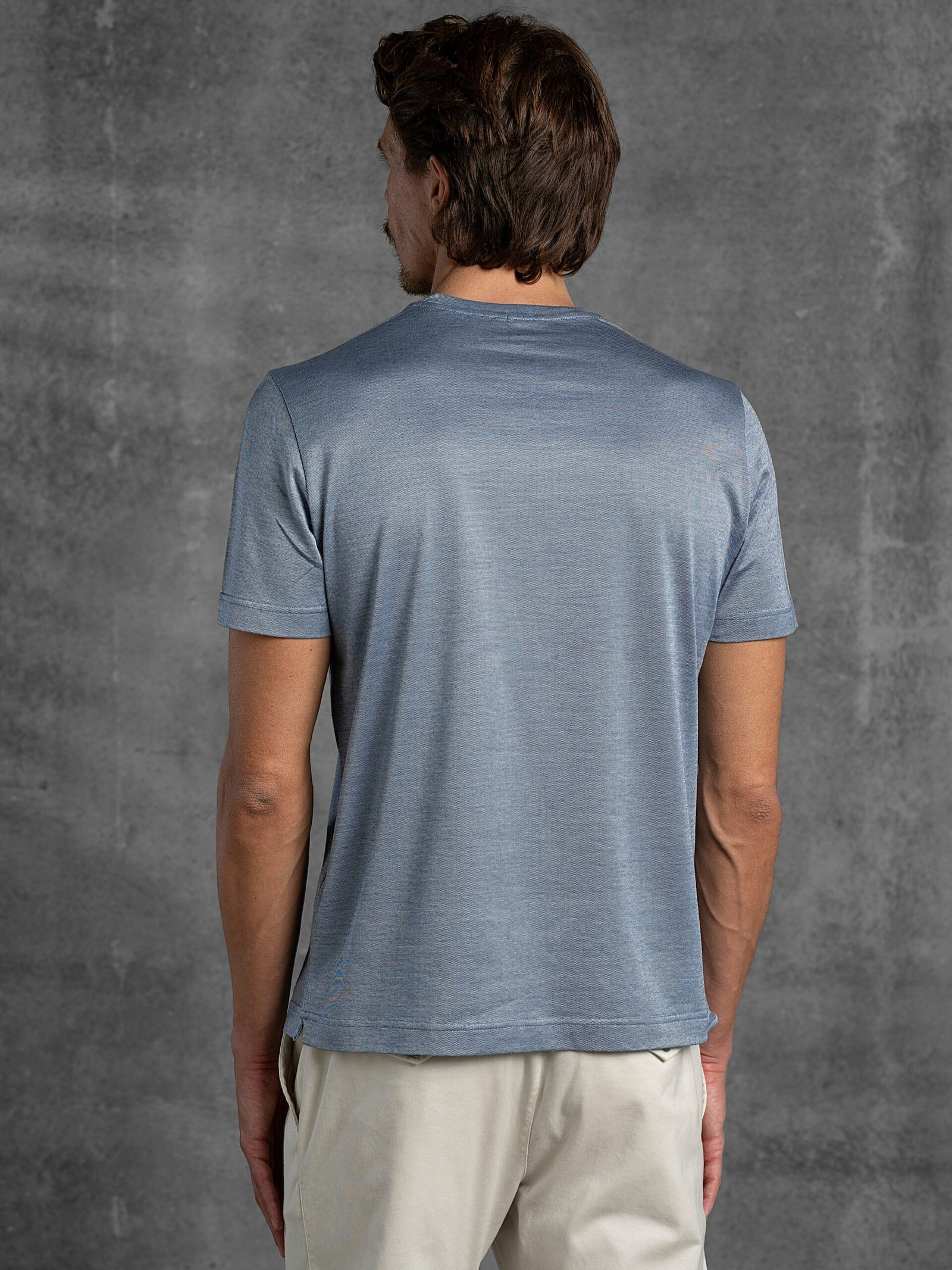 Luxury T-shirt crafted from precious yarn-dyed cotton silk piquet, offering a soft touch and natural sheen. The fine, subtly textured fabric ensures elegance and comfort, while the two small slits at the bottom add a discreet and refined tailoring detail. A sophisticated essential, perfect for polished summer style.