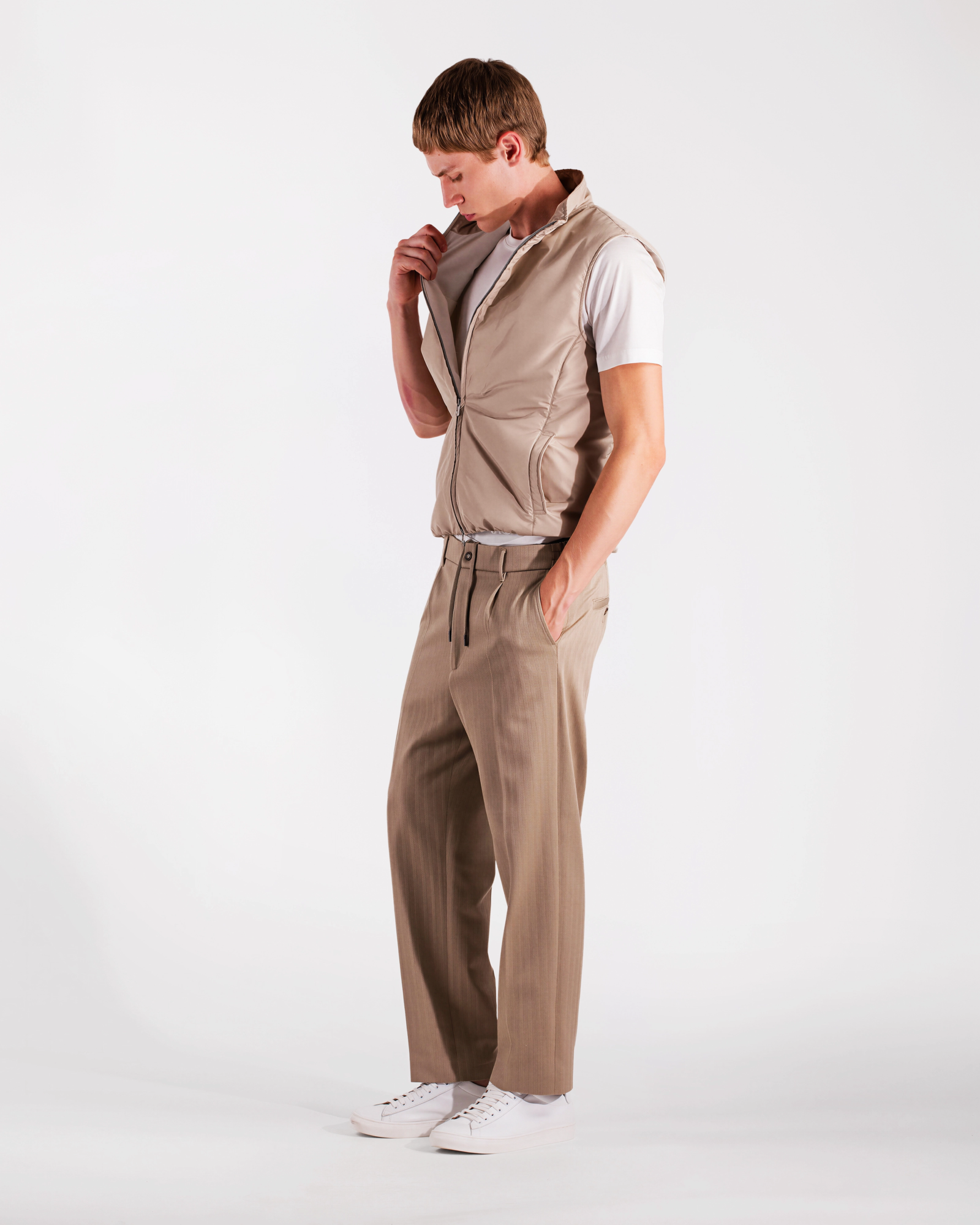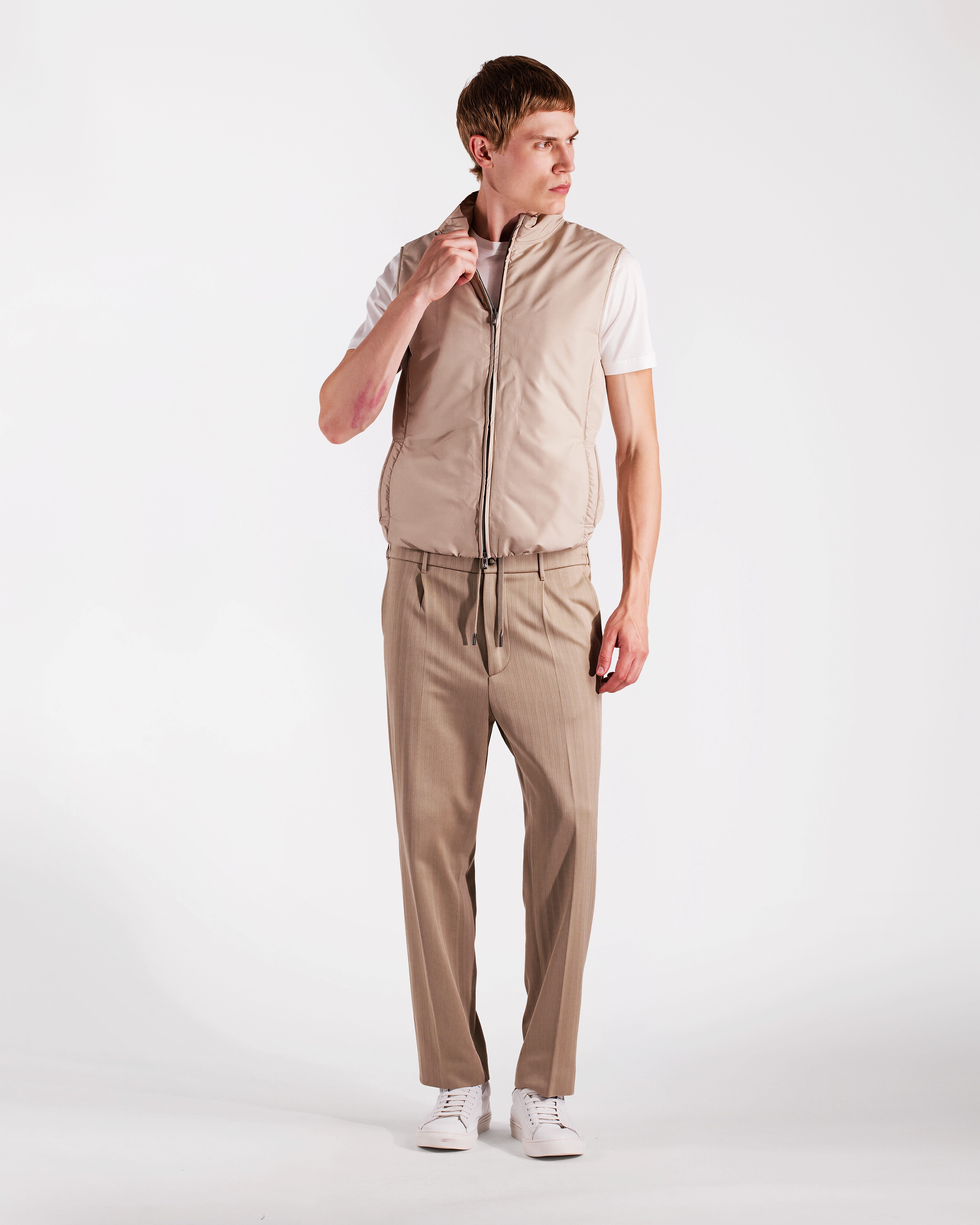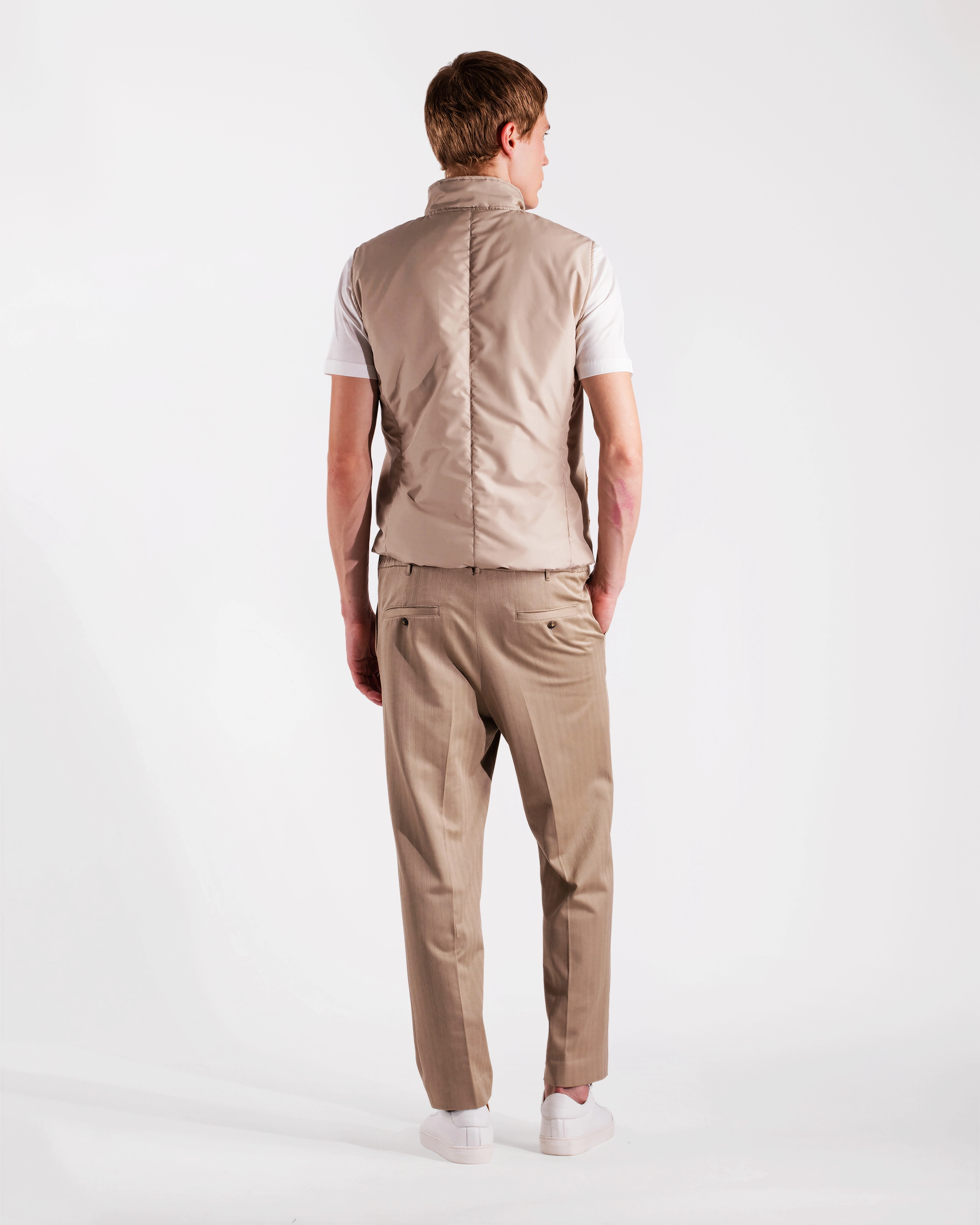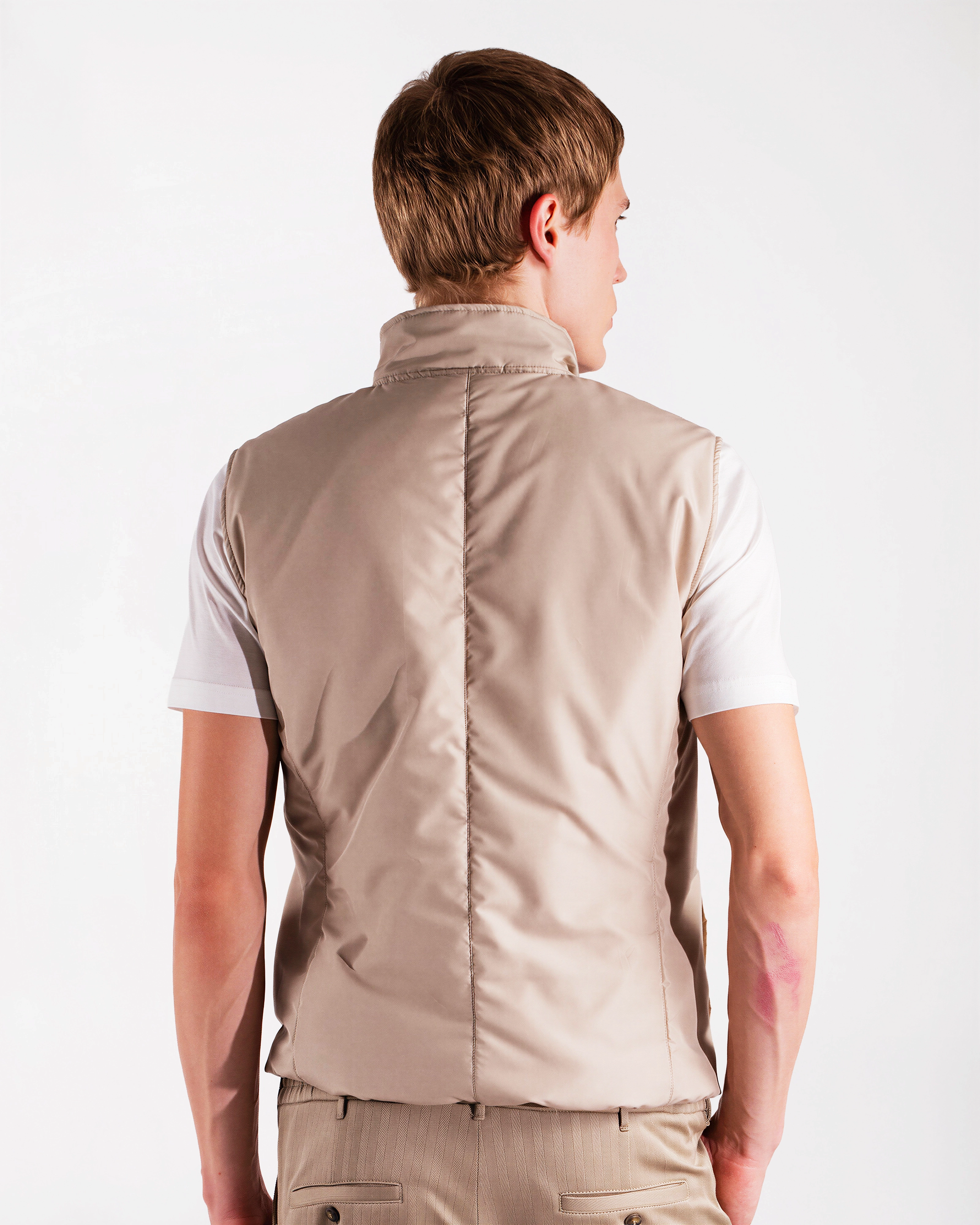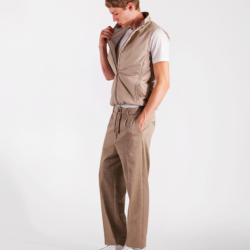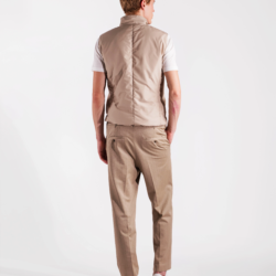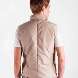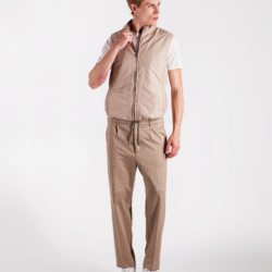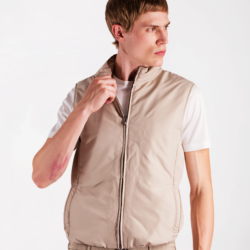 Practical yet refined vest crafted from a technical polyester fabric that is both water‑repellent and wind‑resistant, offering reliable protection from the elements while remaining lightweight and comfortable. The compact structure of the material creates an effective barrier against light rain and wind, while ensuring ease of movement and long‑lasting durability. The contrasting interior adds a distinctive touch, and the light wadding padding provides warmth without adding bulk. The design is completed by a logoed double‑slider zipper and two hip pockets for everyday practicality. A versatile and functional layer, ideal for transitional weather and effortless outdoor style.