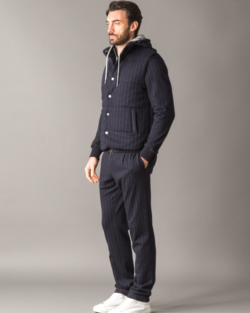 ELEGANT MATCHING SET IN PINSTRIPED WOOL-COTTON FLEECE